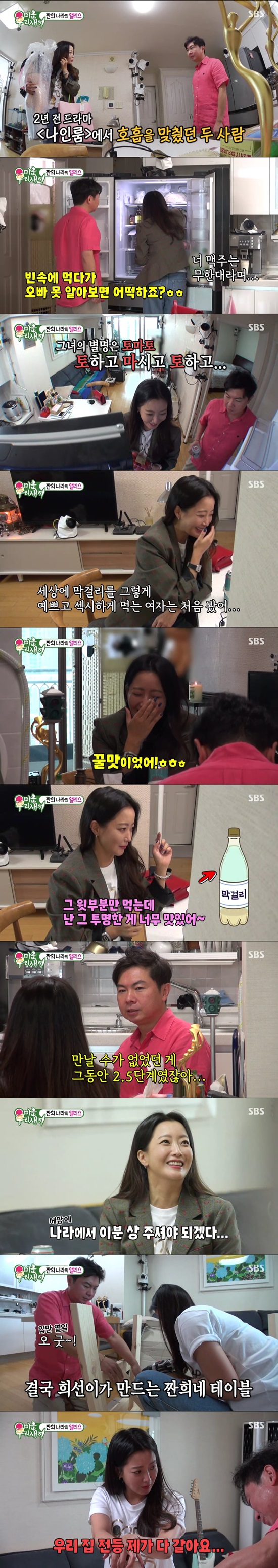 다른 날 임원희의 집에 배우 김희선이 놀러왔다. 김희선은 임원희를 위해 밑반찬을 사왔고, 임원희는 김원희를 위해 꽃 선물을 준비했다. 임원희는 김희선이 출연 중인 드라마 '앨리스'를 언급했다. 김희선은 극 중에서 시간여행자로 20대부터 50대 배역까지 소화 중인데, 위화감 없는 20대 연기가 화제가 됐다. 김희선은 "감독님이 너무 욕심이 많다"며 쑥스러워했다.